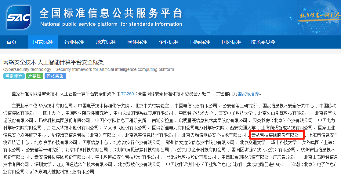 近日,國家標(biāo)準(zhǔn)GB/T 45958-2025《網(wǎng)絡(luò)安全技術(shù) 人工智能計(jì)算平臺安全框架》正式發(fā)布。該標(biāo)準(zhǔn)由全國網(wǎng)絡(luò)安全標(biāo)準(zhǔn)化技術(shù)委員會歸口管理,華為技術(shù)有限公司牽頭,云從科技作為核心起草單位之一,深度參與了標(biāo)準(zhǔn)制定工作。 這項(xiàng)將于2026年2月1日正式實(shí)施的國家標(biāo)準(zhǔn),為人工智能計(jì)算平臺建立了系統(tǒng)化的安全框架,規(guī)定了安全功能、安全管理和角色安全職責(zé),將有效應(yīng)對硬件漏洞、訓(xùn)練數(shù)據(jù)泄露、對抗樣本攻擊等新型安全威脅。